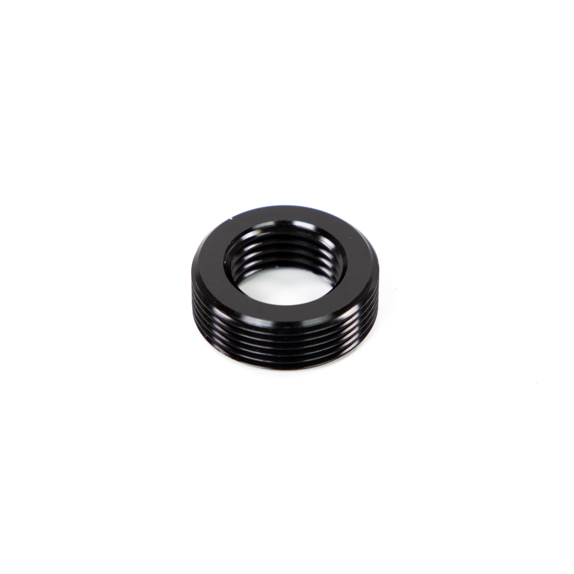 Thread bushing to convert 1/2" x 20 UNF Threading to M20x1 Threading. Aluminum with Black Anodizing, extremely light weight and durable, will not corrode, less likely to seize.